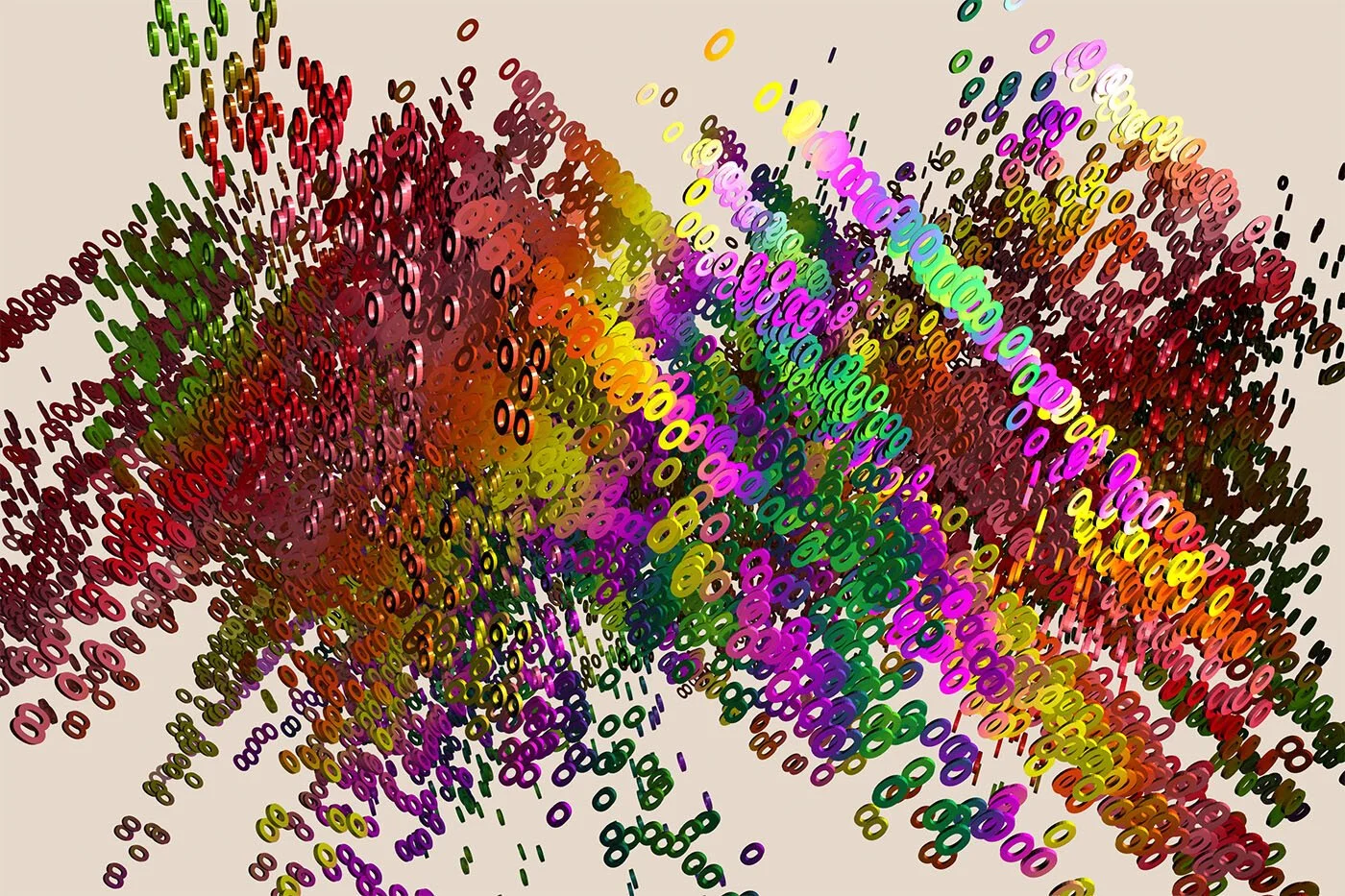 “ The computer offers an expanded universe with unique possibilities that enable me to shift away from the legacy of the picture plane. I find myself generating imagery that depends upon the unique capabilities of computer programming and mathematical procedures. Complexity as defined by thousands of objects within three-dimensional space became of great interest to me. Parameters are set according to an image in my mind, thousands of objects and fragments are randomly placed within the world space. From a distance, these pictures appear to be a textured rug but as the scale increases and you move further into space. Perhaps it becomes a journey into a universe, with the meaning changing, depending on ones position in space. I often ask myself if the world is falling apart or coming together again?” - Charles Csuri