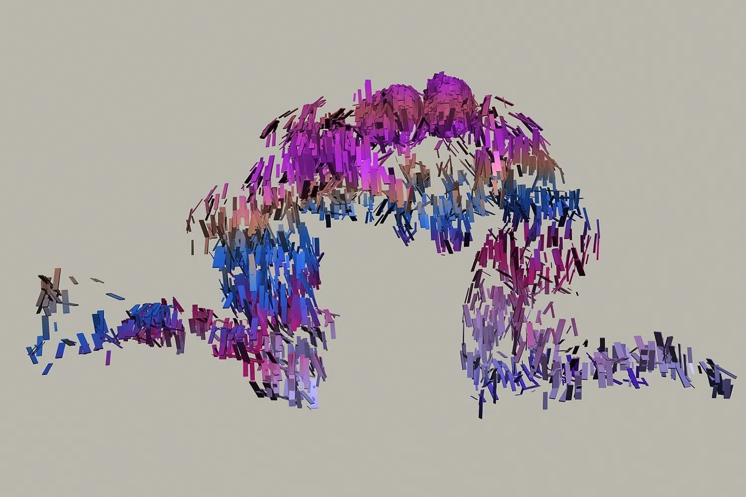 Csuri continues exploring artistic complexity achieved only by code in the generative process he passionately pioneered. He expresses a sense of movement with 3D brushstrokes in flight and moves into meaningful subjects. During Covid 19 and issues surrounding social justice Csuri strove to depict humanity. Csuri further employed shapes as building blocks creating as a digital sculptor.