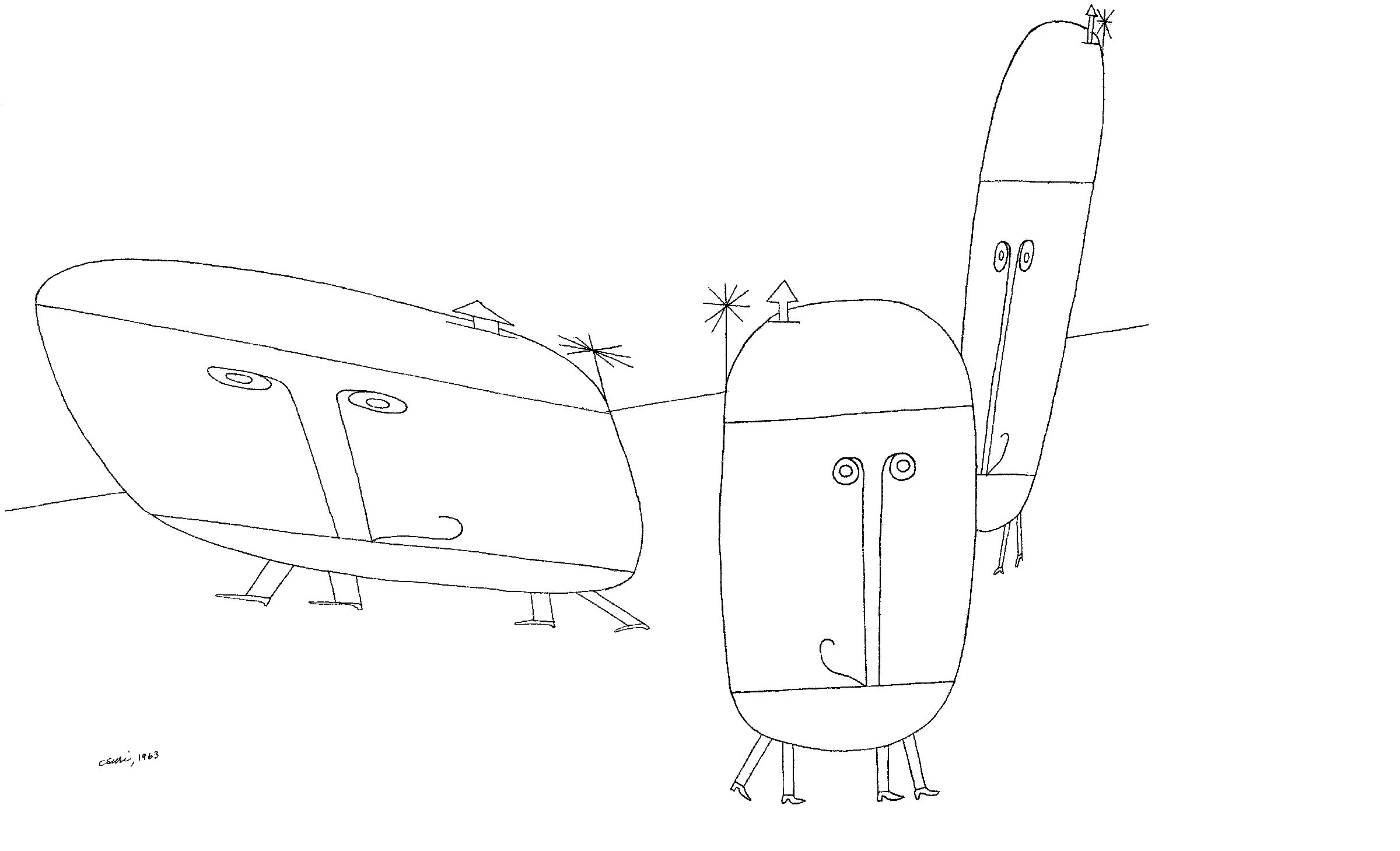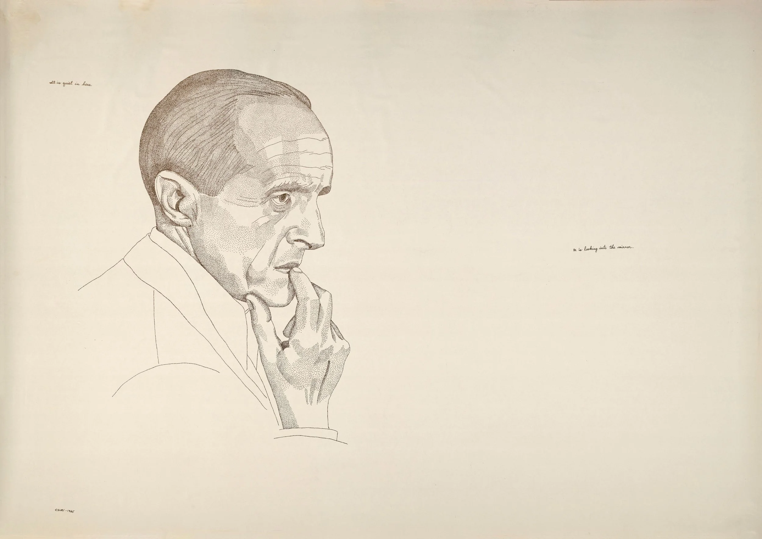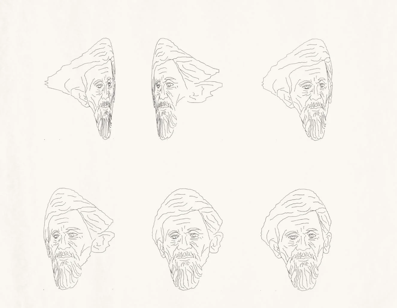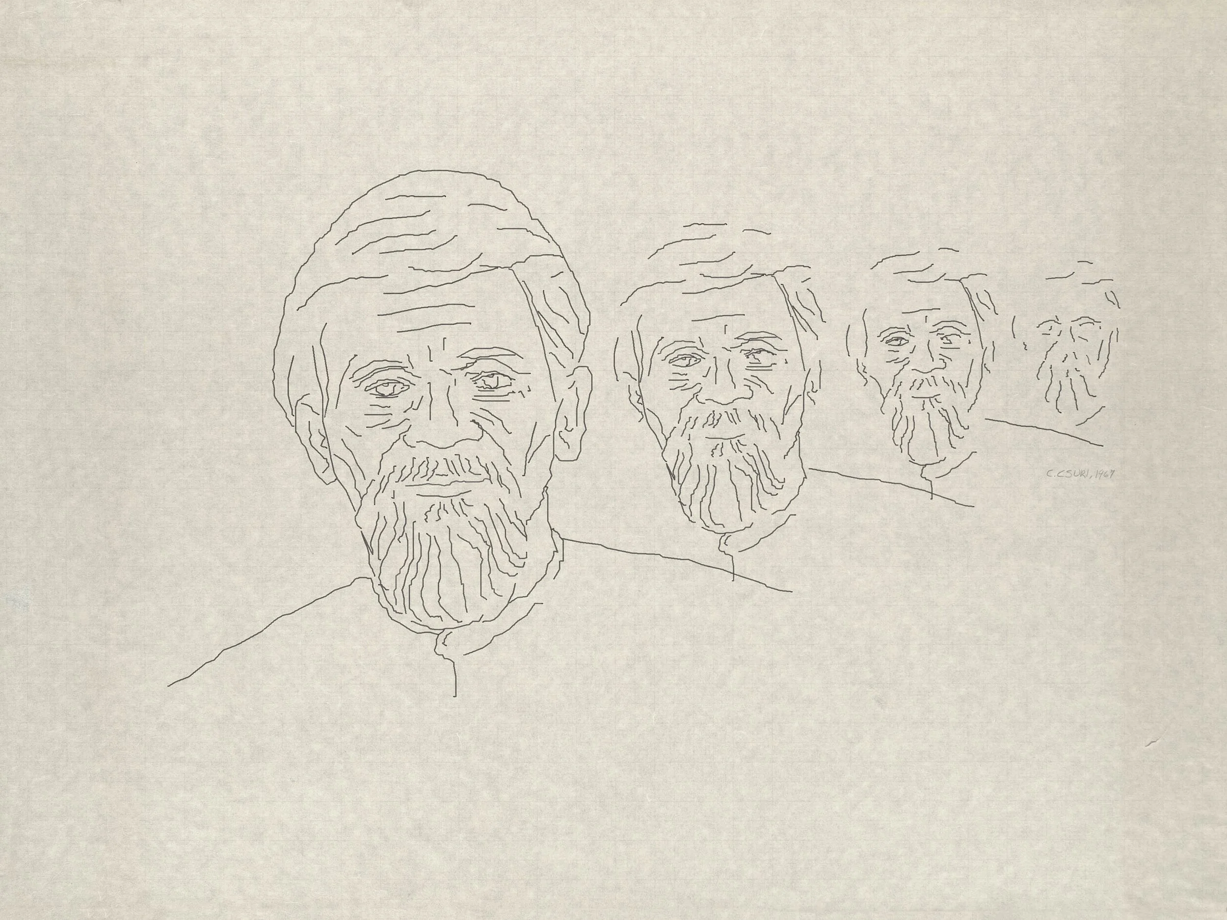 Csuri explored technology through fine art in his paintings. Examples of line transformation are evident in “The Bearded Man with Parrot”, 1964, and “Contemplation”, 1964. To create these works he employed techniques like warping and morphing, setting the stage for the emergence of 2D and 3D generative computer